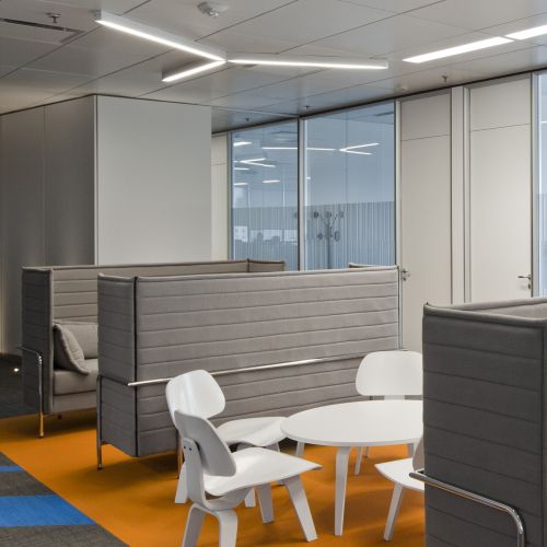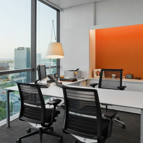 The office offers a variety of open and enclosed meeting spaces, with different furniture, capacity and dimensions, permitting to choose the right scale for different types of meeting. Furniture flexibility allows to combine and unify rooms, according to the need of the daily work.