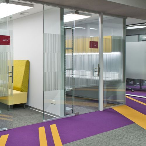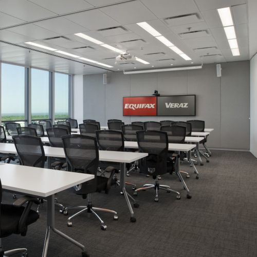 Equifax Veraz 11th floor new offices are organized with extreme pragmatism and synthesis. Main corridors round the core of the building. Two large sets of closed offices and support rooms face the river and Buenos Aires downtown area. Open workstations are distributed in rows on the other two sides of the building.