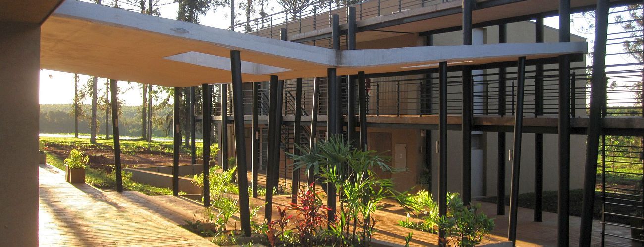 El principal objetivo fue generar un edificio que exalte la relación con el entorno y a su vez conviva con las características especiales del sitio: el desnivel natural del terreno, las lluvias torrenciales y las elevadas temperaturas. Se planteó un edificio compuesto por dos volúmenes enfrentados, diferenciando usos públicos y privados, lo que da lugar a un espacio central exterior compuesto por rampas y escaleras que salvan las diferencias de nivel.