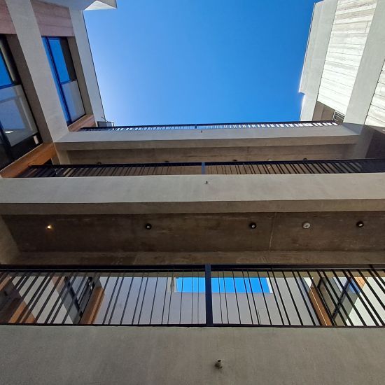 El sistema constructivo utilizado es hormigón armado en todos sus niveles, con fachadas de hormigón a la vista y revestimientos símil madera. Las unidades se caracterizan por tener ambientes espaciosos y cocinas integradas de gran diseño, balcones y parrilla.