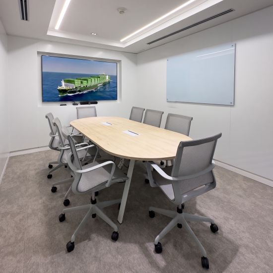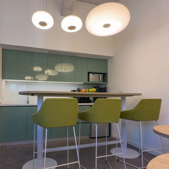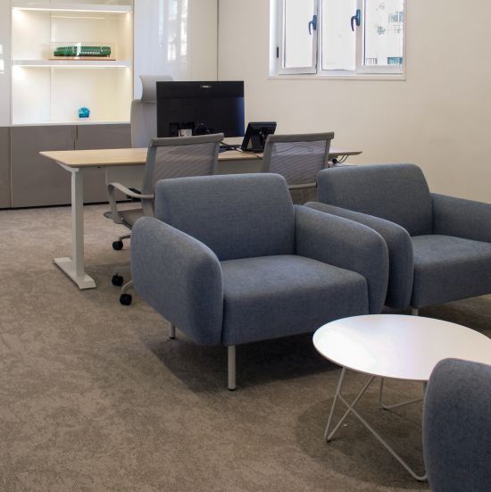 Esta propuesta se complementa con salas de reunión privadas, escritorios elevables y equipamiento ergonómico, priorizando entornos luminosos y eficientes. La identidad visual del proyecto se define por una paleta de tonos neutros en convivencia con la calidez de la madera, logrando una atmósfera de sobriedad, minimalismo y confort.