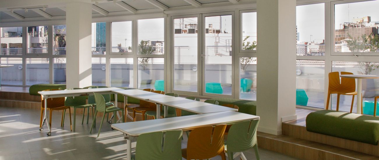 El último nivel destaca por su versatilidad: un espacio dinámico que se transforma de comedor a auditorio mediante mobiliario modular. Conectado a una terraza con vistas al Obelisco, el sector está totalmente equipado con tecnología de alta fidelidad y servicios para eventos.